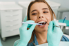 En bas : un arc lingual (deux bagues scellées sur les molaires inférieures reliées par un fil qui passe en arrière des dents), ou une gouttière transparente